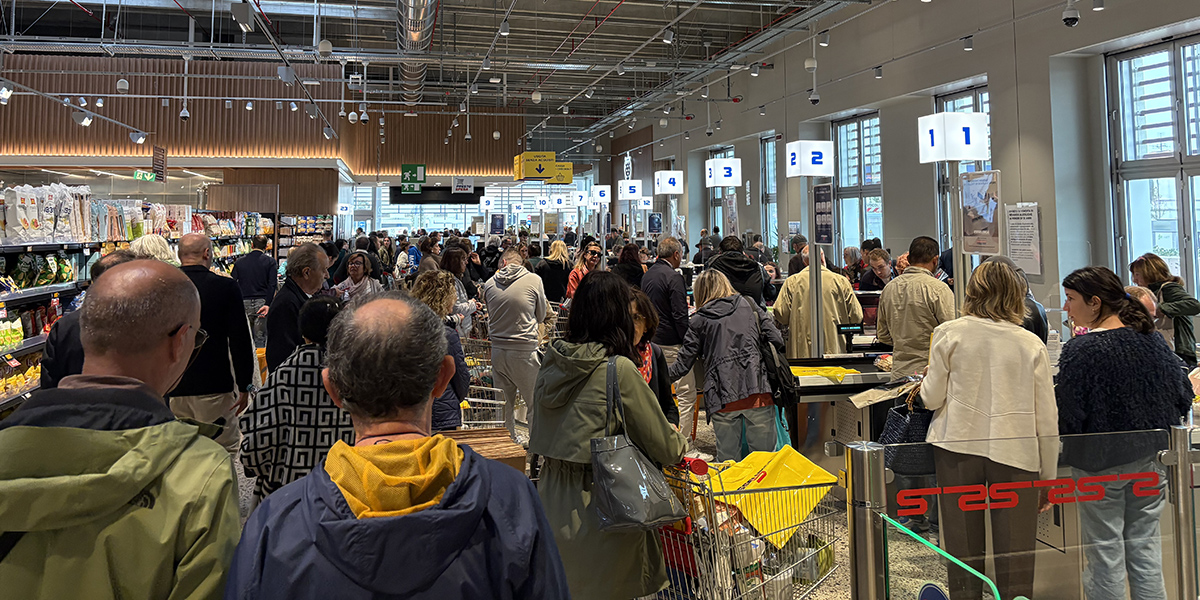 Alle casse non sono mancate le code, comprensibili vista la curiosità per l’arrivo della catena lombarda in città. Per rendere l’esperienza di acquisto più rapida e comoda, però, il supermercato mette a disposizione casse veloci per il self-payment e il self check-out, oltre al servizio “Presto Spesa”, accessibile anche tramite app.