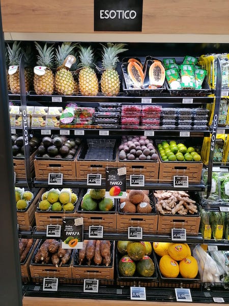 "Punti di forza del reparto - spiega Fent - sono biologico ed esotico, quest'ultimo forte di 13 referenze e strategico in un'area nella quale vivono anche persone di origine straniera: puntiamo sul pronto da mangiare per agevolare l'approccio al consumatore in un contesto di vendita a libero servizio. Offriamo papaya e mango via aerea, avocado Hass insieme a svariate informazioni sul prodotto. Informazioni che siamo attenti a offrire anche per altre referenze, come le mele".