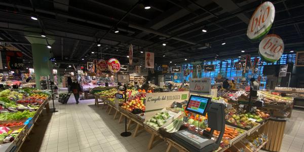 Durante la pandemia, sia nella prima che nella seconda ondata, le grandi strutture periferiche sono state svantaggiate come afflusso di clientela. "Nel nostro negozio – sottolinea il direttore – è avvenuto solo per la parte di ristorazione, mentre quella del superstore non ha subito ripercussioni, essendo localizzato in città. Inoltre, per venire incontro ai nostri clienti in questo particolare periodo, abbiamo raddoppiato la maggior parte delle referenze di ortofrutta di prima gamma sfuse, proponendole anche confezionate. Questo nell’ottica di dare il migliore servizio ai clienti, agevolandone la velocità di spesa anche considerando l’abbassamento della frequenza di acquisto durante il lockdown, a fronte di un’impennata della penetrazione scontrino (cresciuta da una media del 50-55% del periodo pre-lockdown a una media del 70% durante la pandemia, con punte anche dell’80%). Come anticipato, “durante il lockdown abbiamo sofferto con la ristorazione. Ad esempio, in primavera con le prime chiusure, abbiamo dovuto chiudere tutte le aree di ristoro, che per noi incidono il 15% del fatturato complessivo. È andata meglio durante la riapertura estiva, ma da settembre - conclude il direttore del negozio - con i primi casi ed i primi focolai, ci sono state punte del -50% sui posti occupati”.