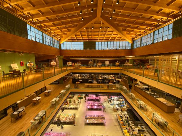 “Il Maestoso - continua il direttore del punto vendita - è composto da tre livelli: piano terra, primo piano e secondo piano, per un totale di 3200 metri quadri. La struttura è suddivisa tra il “il Mercato”, ovvero il superstore al piano terra (1800mq), poi salendo al primo piano troviamo “La Corte” (1000 mq) ovvero un’area dedicata alla ristorazione e suddivisa in sei diversi corner per interesse culinario (verdura, pasta, salumi e formaggi, carne e pesce, pizza-hamburger-birra, vino) ed infine, all’ultimo piano, un’area di 400mq dedicata a mostre e feste private. Da qui è possibile avere una bellissima visione d’insieme dell’intera struttura, un link per far capire al cliente che in tutte le diverse aree troverà prodotti tali e quali o preparati sul momento”.