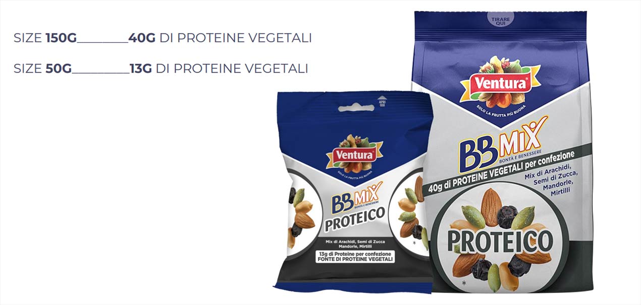 I risultati sorprendenti della ricerca hanno spinto Ventura ad ampliare l’utilizzo delle arachidi in diverse categorie merceologiche: dai mix di frutta secca alle barrette raw di frutta secca e non mancheranno nuovi sviluppi nel prossimo futuro. Il mix di frutta secca è nei formati da 150g o 50g, con arachidi tostate, semi di zucca tostati, mandorle sgusciate e mirtilli essiccati: contengono rispettivamente 40g e 13g di proteine vegetali. Le barrette raw sono 100% vegetali, ad alto profilo nutrizionale, gluten free, lactose free e soy free e contengono 10/11g di proteine nel formato da 50g.