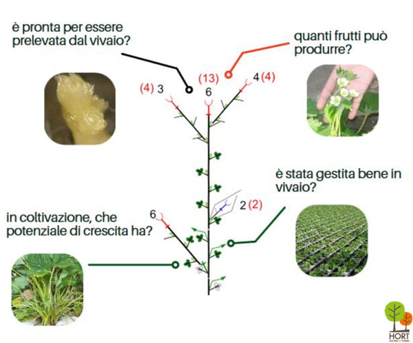 Tutte le informazioni relative al numero di infiorescenze, alla loro posizione lungo il germoglio e alla fase di sviluppo di ciascuna infiorescenza sono importanti per basare la qualità delle piante sulla loro potenzialità produttiva e possono essere fornite da una valutazione onnicomprensiva, definita analisi dell'architettura delle piante, che, basandosi sull'osservazione del destino delle gemme e della loro disposizione spaziale, rappresenta un utile strumento di supporto alle decisioni che trova applicazione in particolare per supportare la produzione di piante destinate a colture programmate, soprattutto di fragola. Fornendo una descrizione morfologica, fisiologica e dello sviluppo sia vegetativo sia riproduttivo delle piante, permette di stimare l'entità (numero di fiori prodotti), l'epoca e la scalarità della produzione potenziale delle piante molto prima che i fiori siano visibili e di adeguare di conseguenza la tecnica colturale.