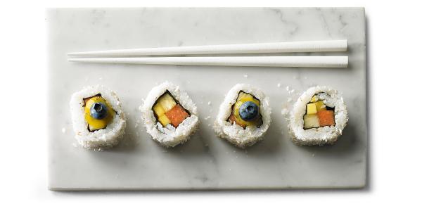 Un sushi rivisitato con la frutta al posto del pesce