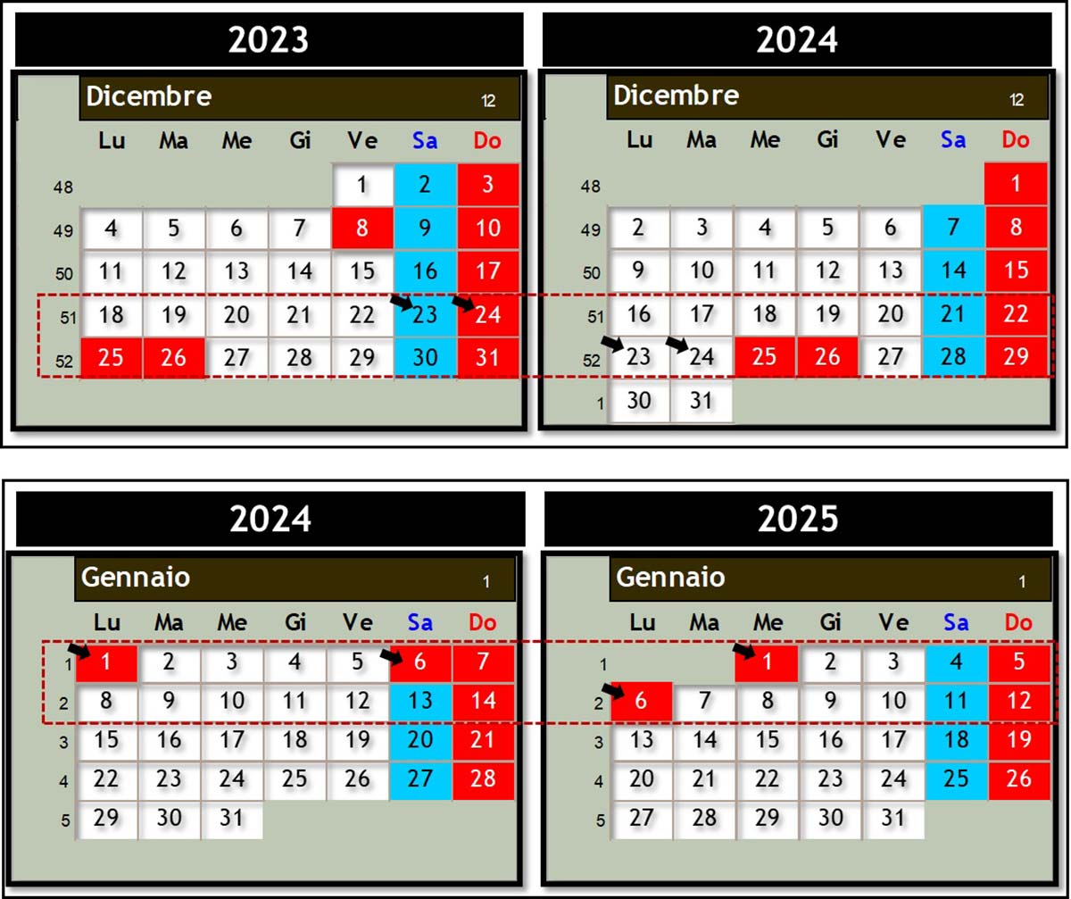 Considerando gli effetti di distorsione derivanti dai diversi calendari tra 2023, 2024 e 2025, i dati negativi di dicembre e quelli positivi della prima settimana di gennaio vanno interpretati con cautela e analizzati in aggregato, includendo anche la settimana 2.