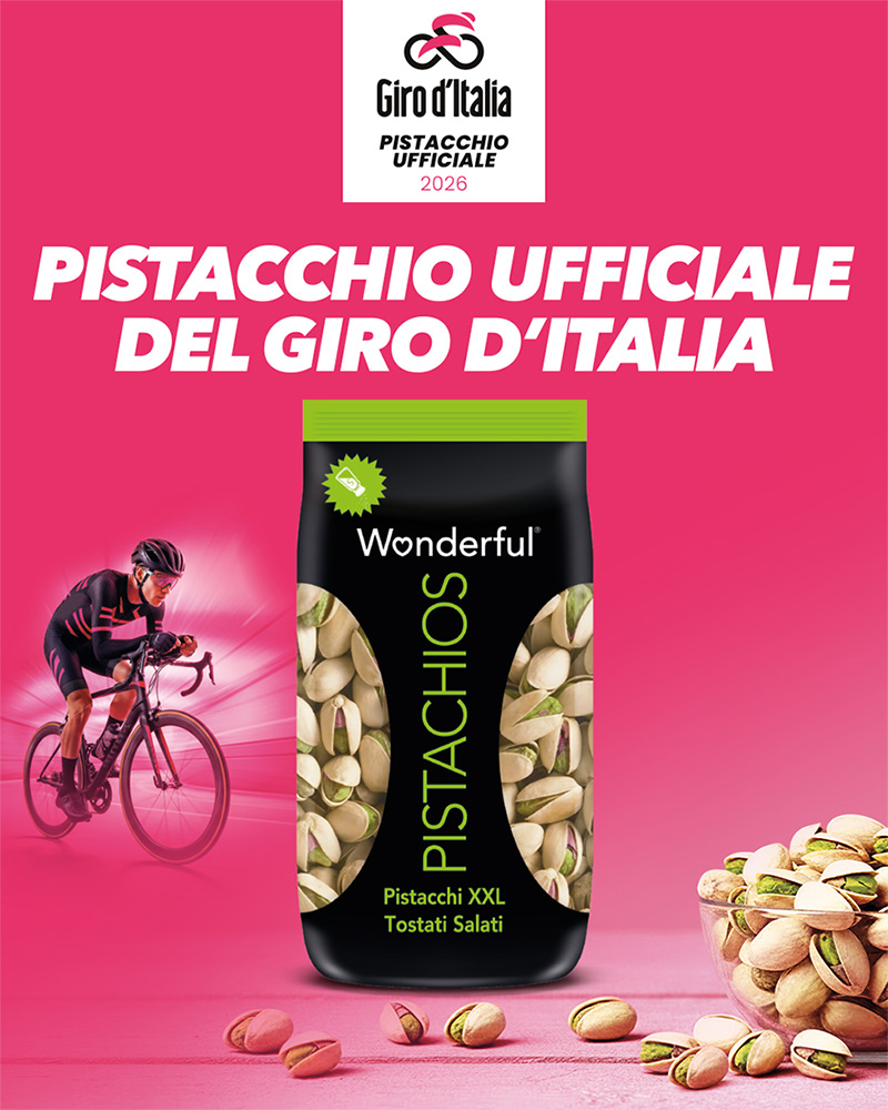 Per il quinto anno consecutivo Wonderful® si conferma Pistacchio Ufficiale del Giro d’Italia, rafforzando una partnership strategica con uno degli eventi sportivi più rilevanti e seguiti in Italia e in Europa e consolidando un progetto sempre più strutturato anche in ottica marketing e comunicazione.